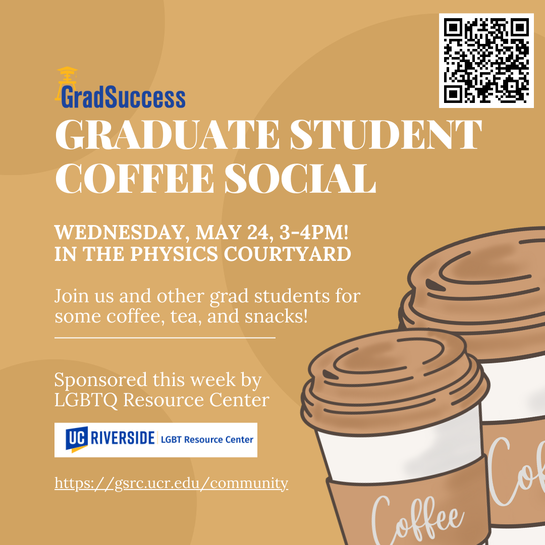 * GradSuccess Coffee Social, Wednesdays, 3-4PM, Physics Courtyard (See GradSuccess IG for updates due to weather)