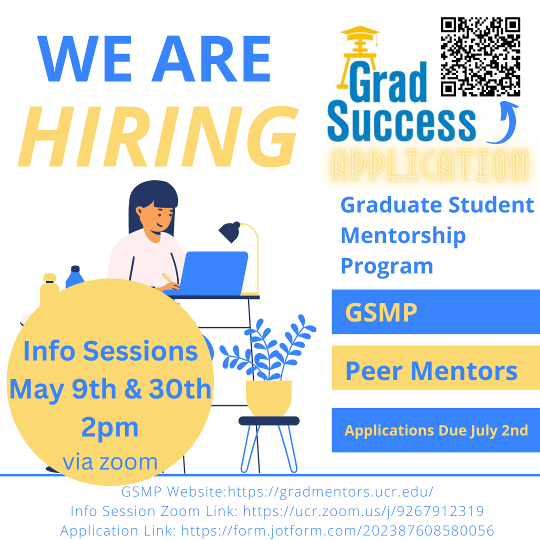 * 2023-2024 GSMP Peer Mentor Info Session, May 30, 2pm, Zoom<https://ucr.zoom.us/j/9267912319>