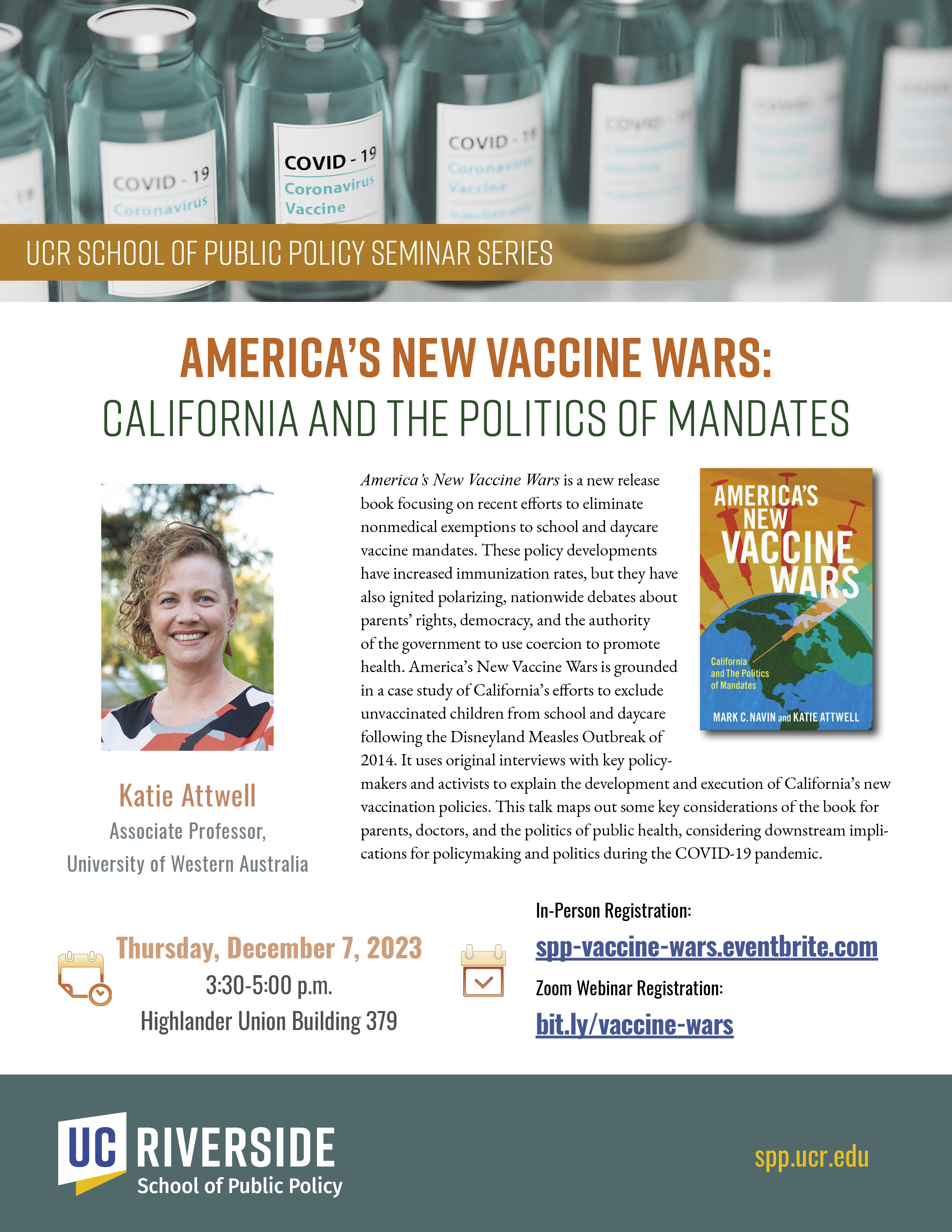 [Poscgrad] Fwd: SPP talk (Dec. 7): Katie Attwell "America’s New Vaccine Wars: California and the Politics of Mandates"