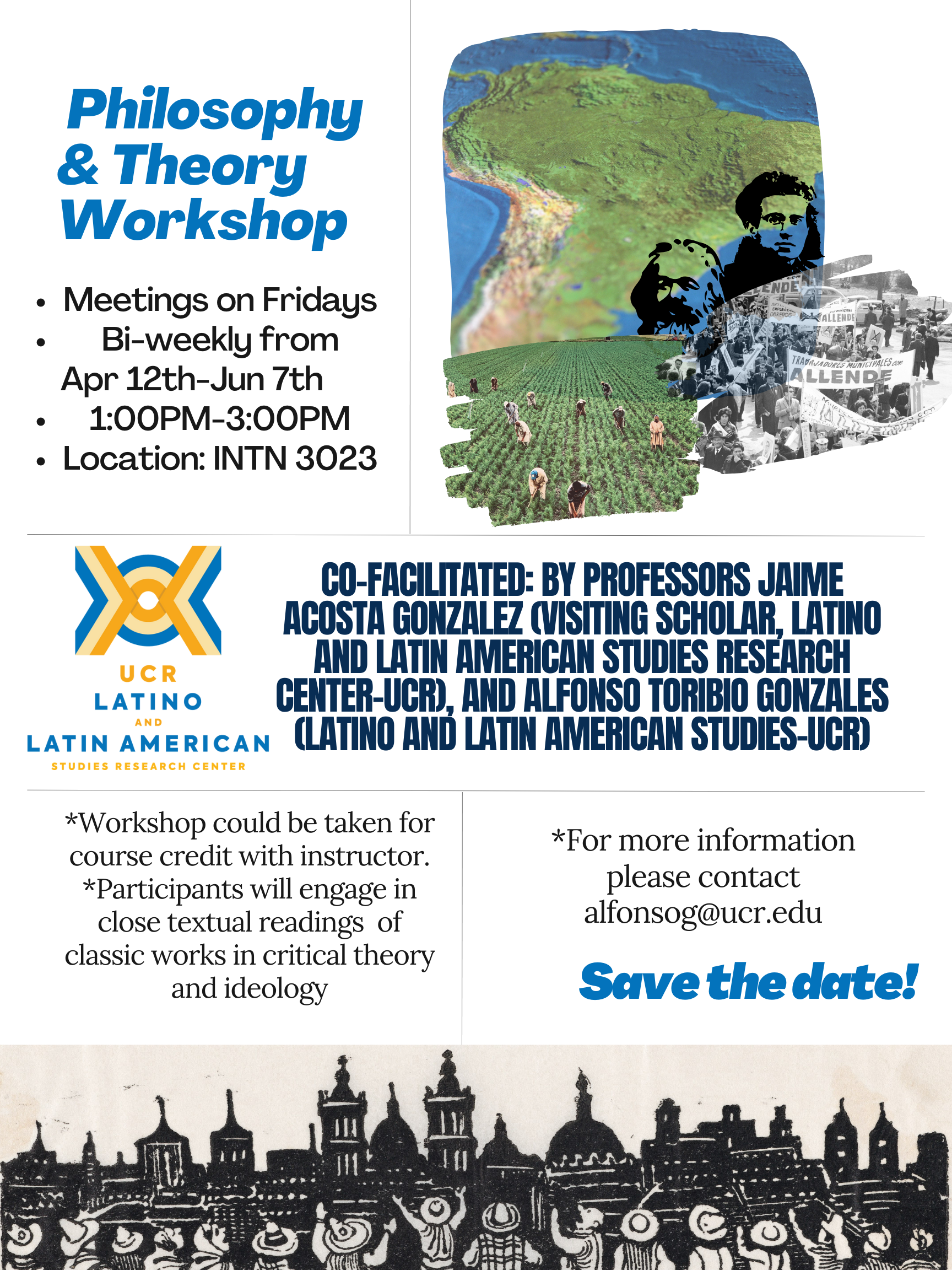 > I would like to share the syllabus for the Latino and Latin American Studies Research Center's Theory and Philosophy workshop. Faculty and graduate students from political science are invited to participate.