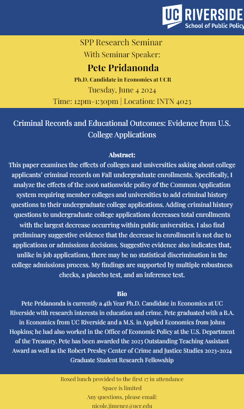 [Poscgrad] [Poscfaculty] Fwd: Upcoming SPP Research Seminar