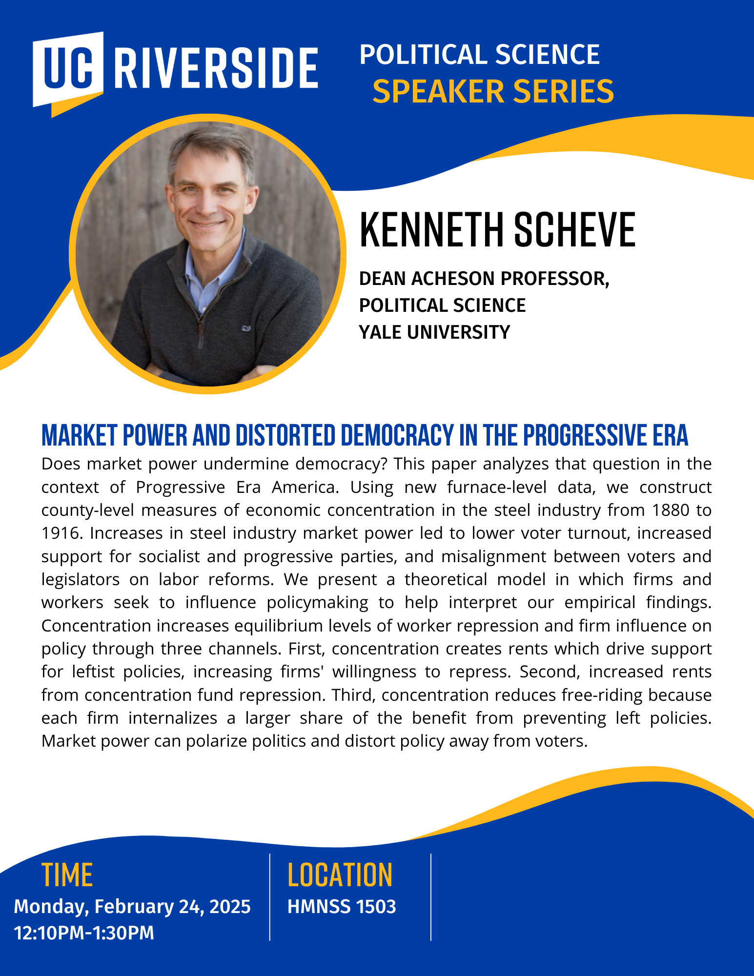 The department will be hosting Professor Kenneth Scheve from Yale