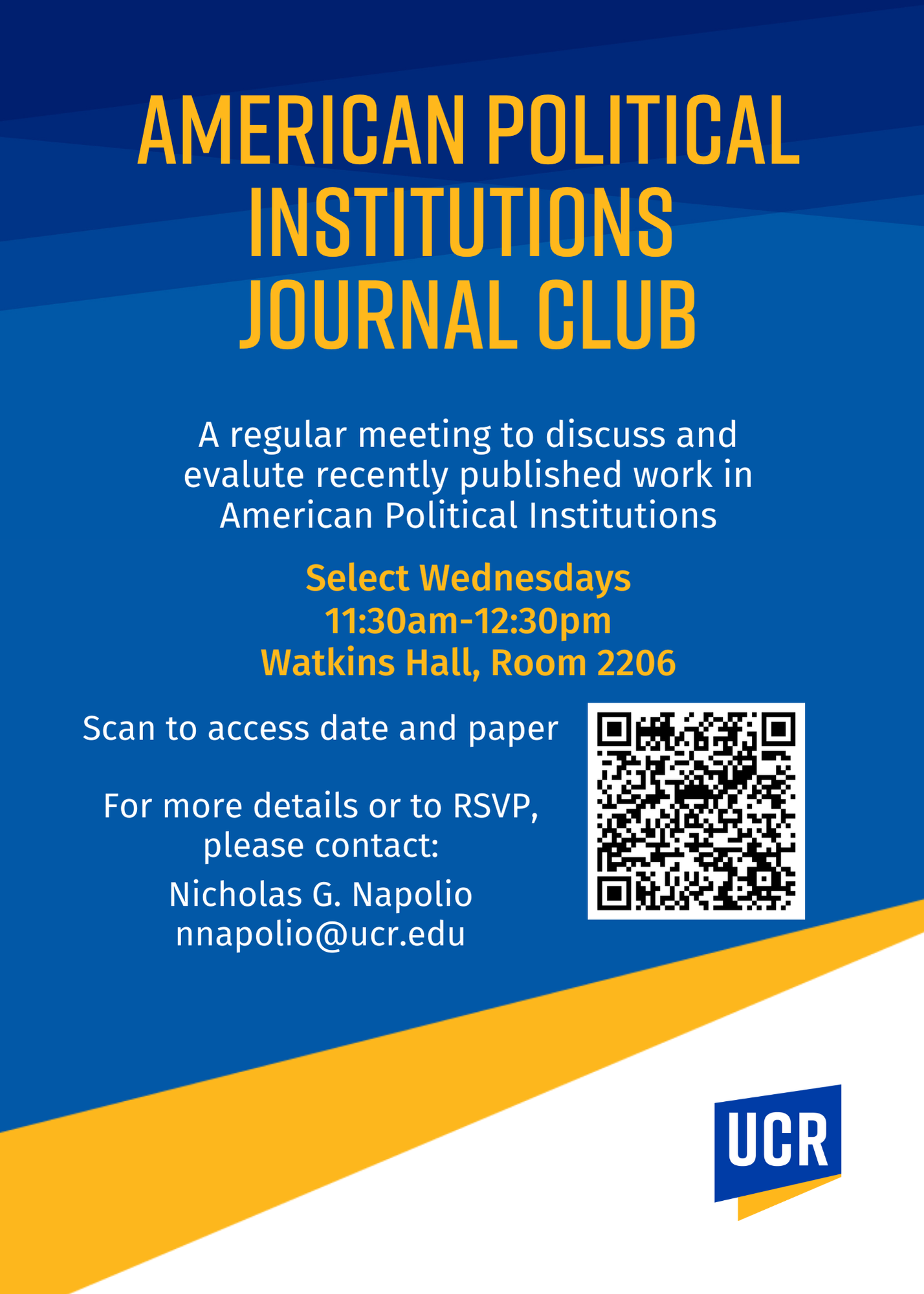 [Poscgrad] American Political Institutions Journal Club (Wednesday, 3/26)