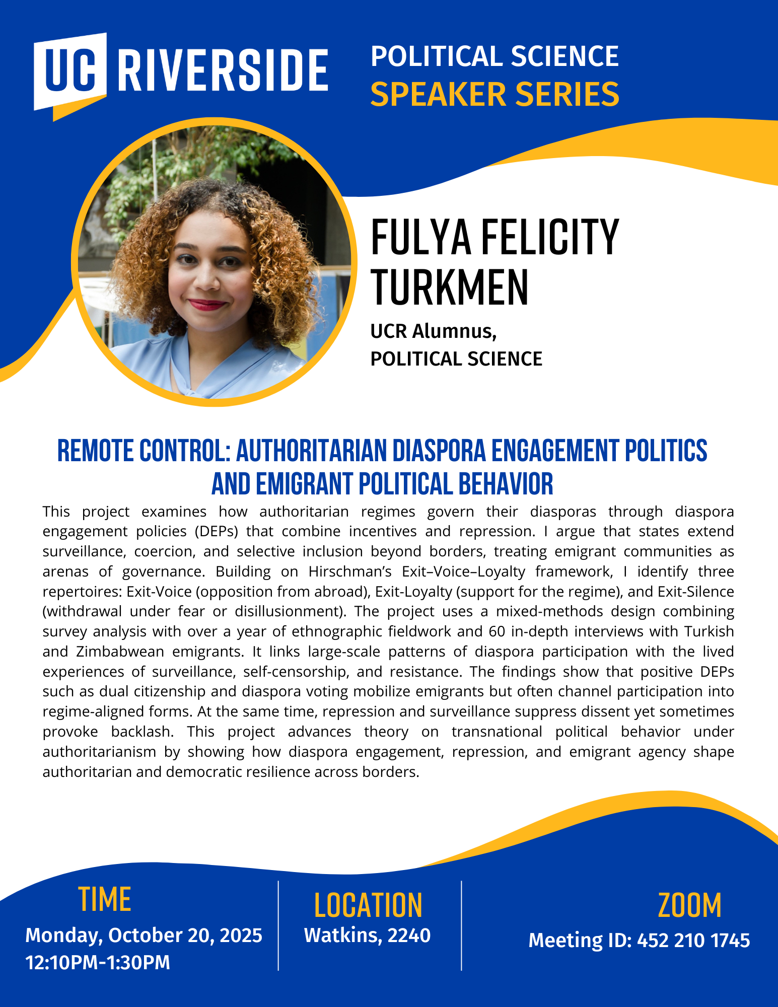 Political Science alumna, Dr. Fulya Felicity Turkmen!* Join us as she