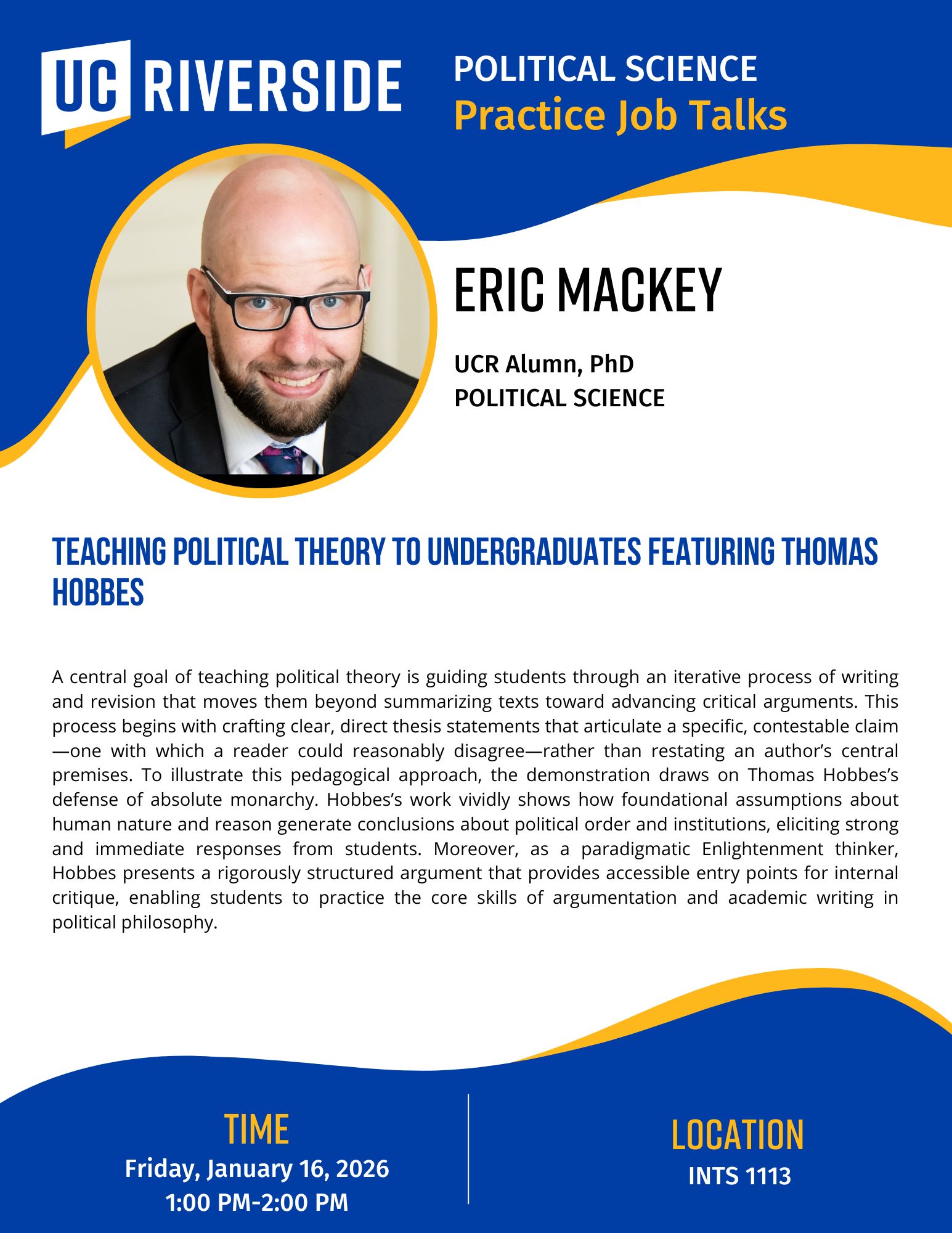 [Poscgrad] Practice Job Talk: Eric Mackey — Teaching Demonstration (16JAN)