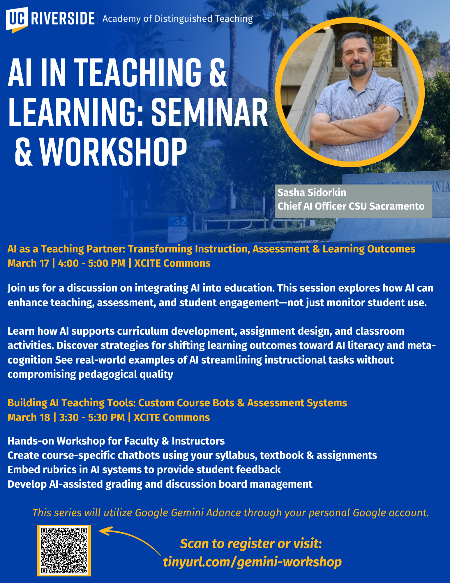 [Professorsofteaching] Heads-up: The Academy of Distinguished Teaching will be hosting an AI Seminar + Workshop