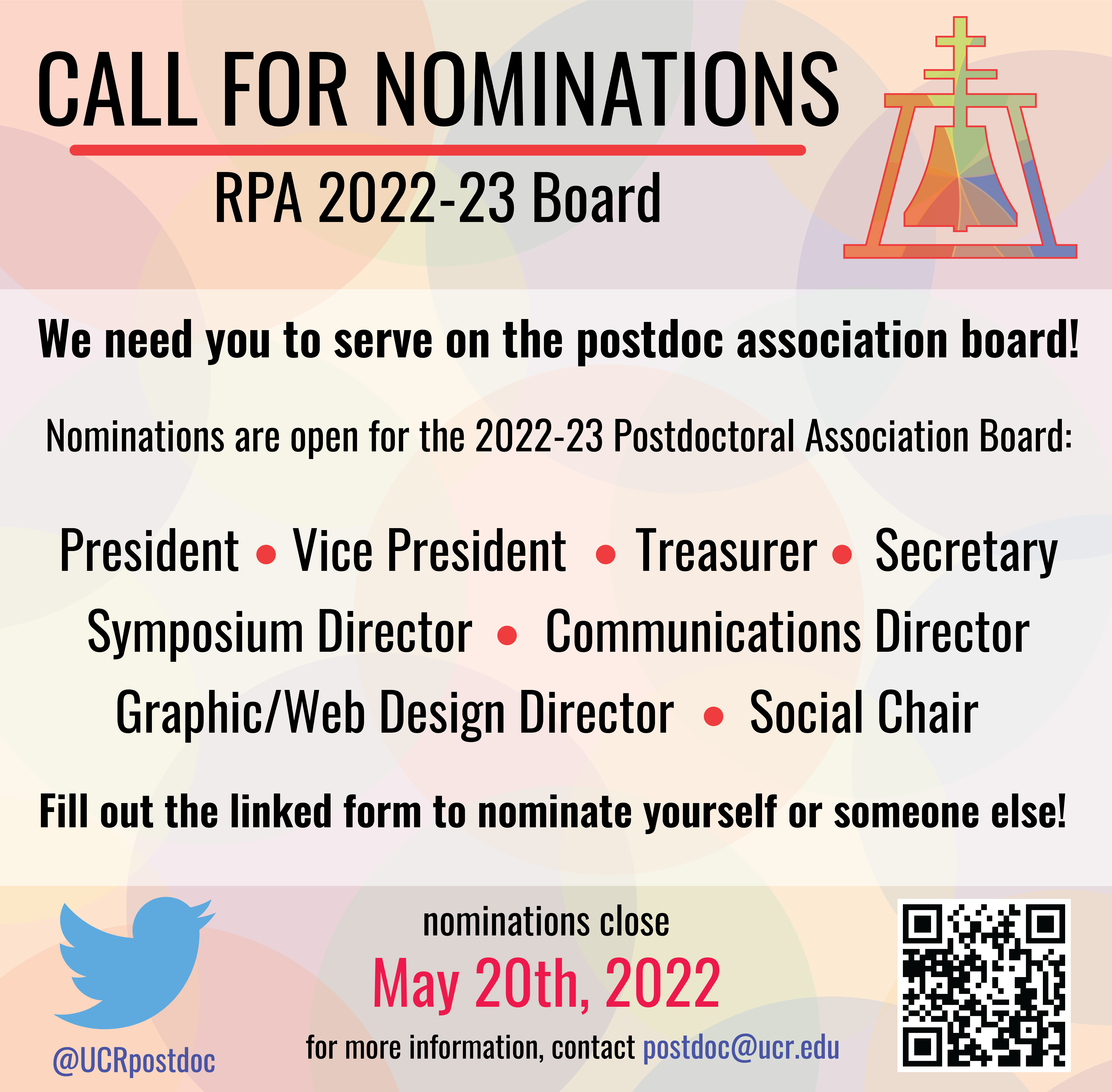 yourself or a postdoc you know by May 20th 2022 to run for the RPA