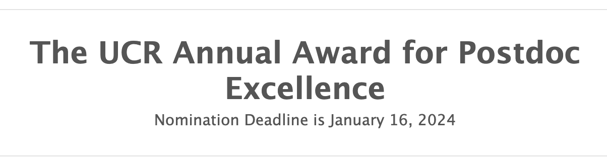 *UCR Postdoc Awards for Excellence*