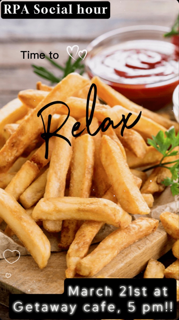 We hope this message finds you well. We are delighted to invite you to our Social hour at Getaway Cafe on March 21st at 5 p.m. See you there!!
