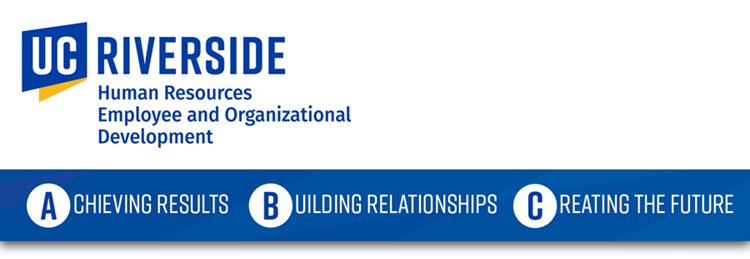 [Email header image. Blue text on white background. UC Riverside Human Resources Employee and Development logo. Achieving Results. Building Re]<https://urldefense.com/v3/__https://hr.ucr.edu/employee-and-organizational-development__;!!OLyWHuc!Szu5xrMJI-t58qhEjDGvJtUOLu_j1pjM4jZJjNh4jT-tuAoYq79pwZzJw2o9O_1y0WAT2nsTV6bPBWbvWP6cFcKyXMKScQv4$>