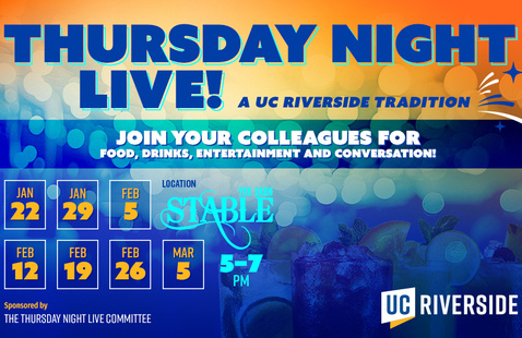 <https://events.ucr.edu/event/thursday-night-live-2372?utm_campaign=widget&utm_medium=widget&utm_source=UC+Riverside&_gl=1*yua63l*_ga*MTYxMzI0MDk5LjE3NDY1NTIxNDA.*_ga_S8BZQKWST2*czE3Njk0NTQ4MzMkbzYwJGcxJHQxNzY5NDU1MjU2JGo1NiRsMCRoMA..*_gcl_au*MTc1MDAxNTgzMy4xNzY5MTk0MTkx*_ga_Z1RGSBHBF7*czE3Njk0NTQ4MzMkbzYwJGcxJHQxNzY5NDU1MjU2JGo1NiRsMCRoMA..>