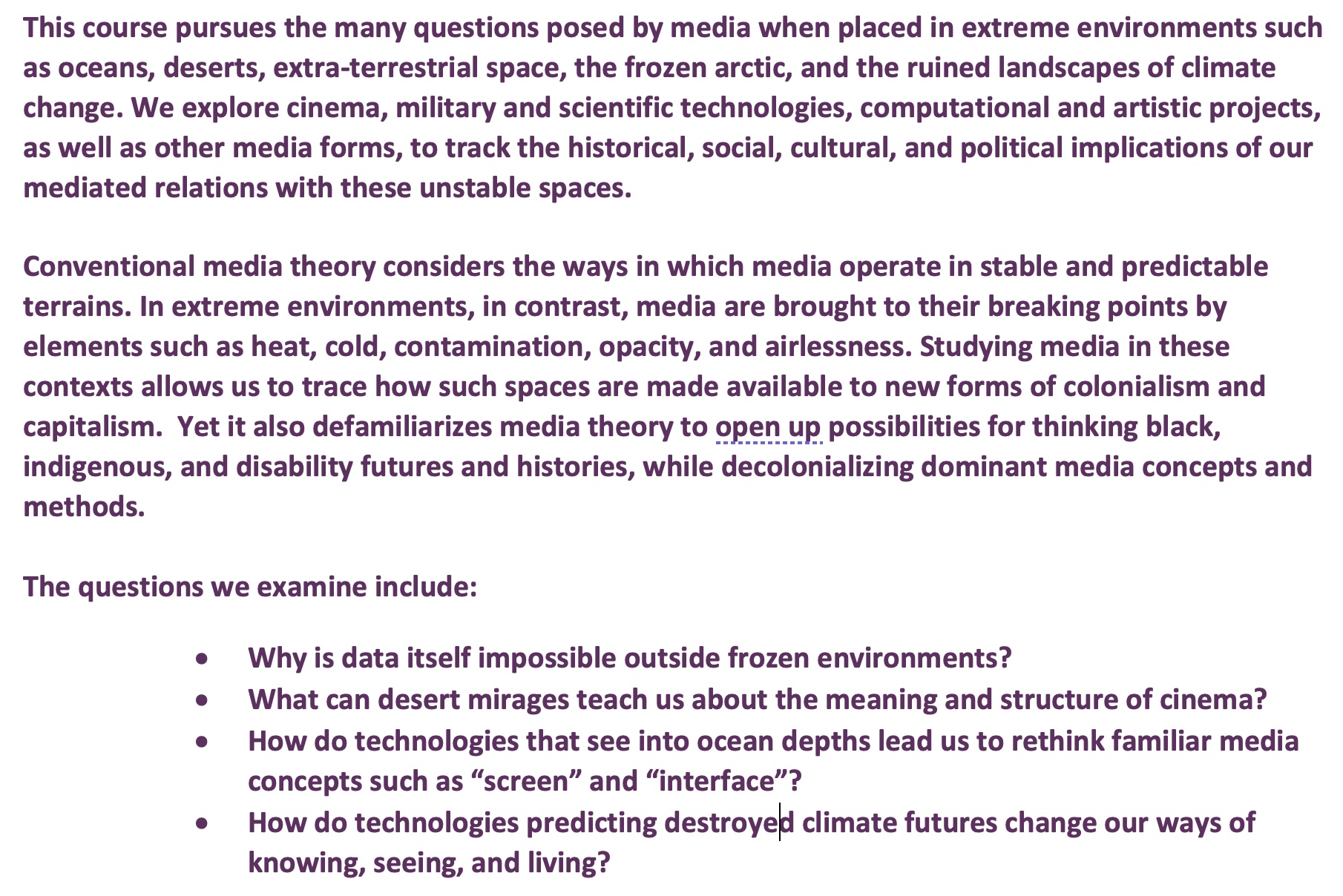 [Sehefac] Help circulating course ad: Media in Extreme Environments