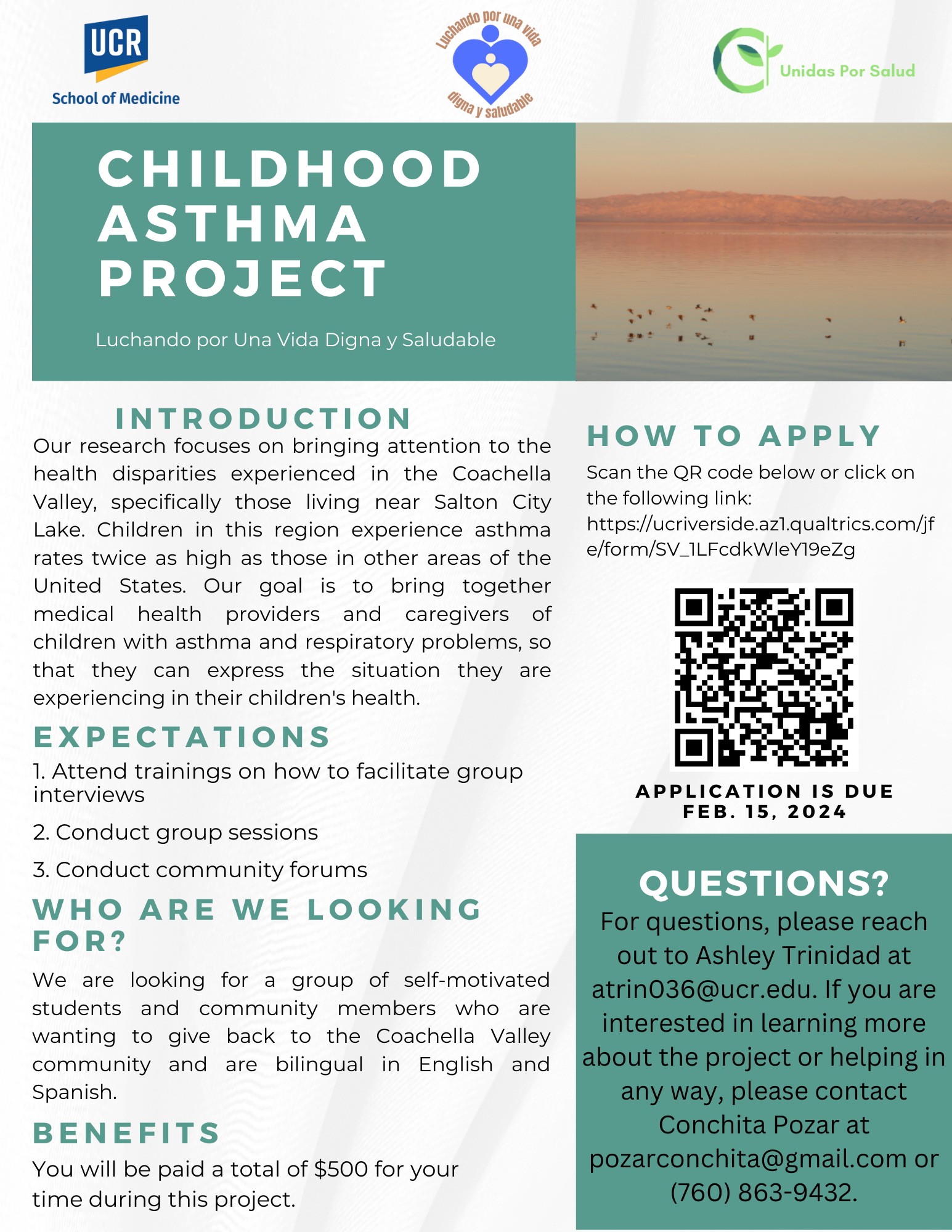 the Salton Sea. Selected facilitators will participate in a training