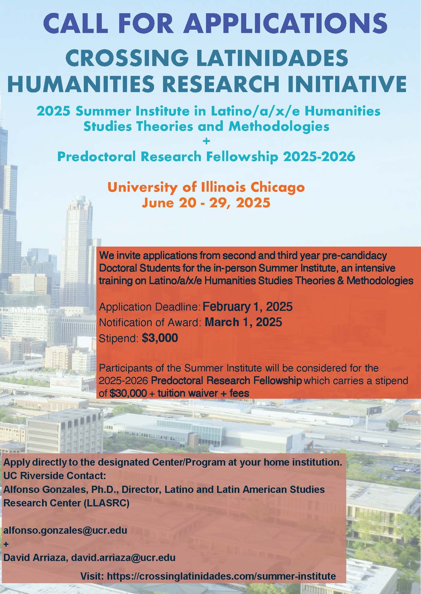 applicants for its Summer Institute in U.S. Latino/a/x/e Humanities Studies