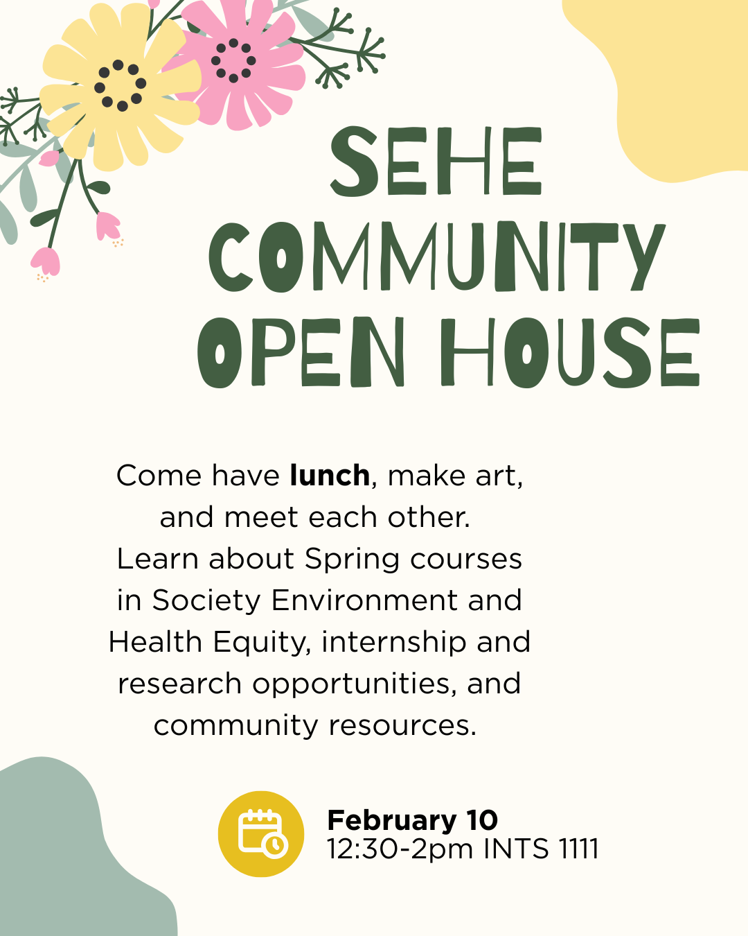 [Sehefac] SEHE Winter Open House Feb. 10, 12:30-2pm INTS 1111