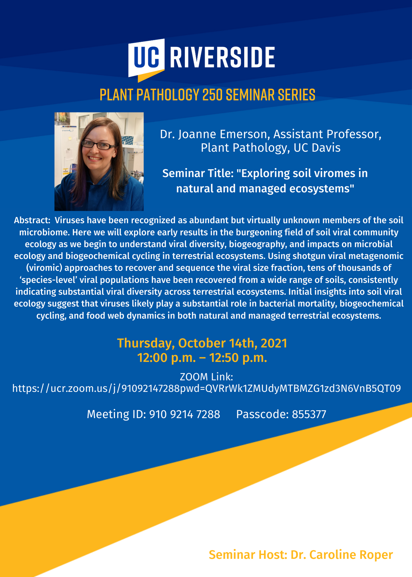 [Seminarcontacts] PLPA 250 Fall 2021 Seminar Series- Dr. Joanne Emerson 10/14/2021 12:00pm