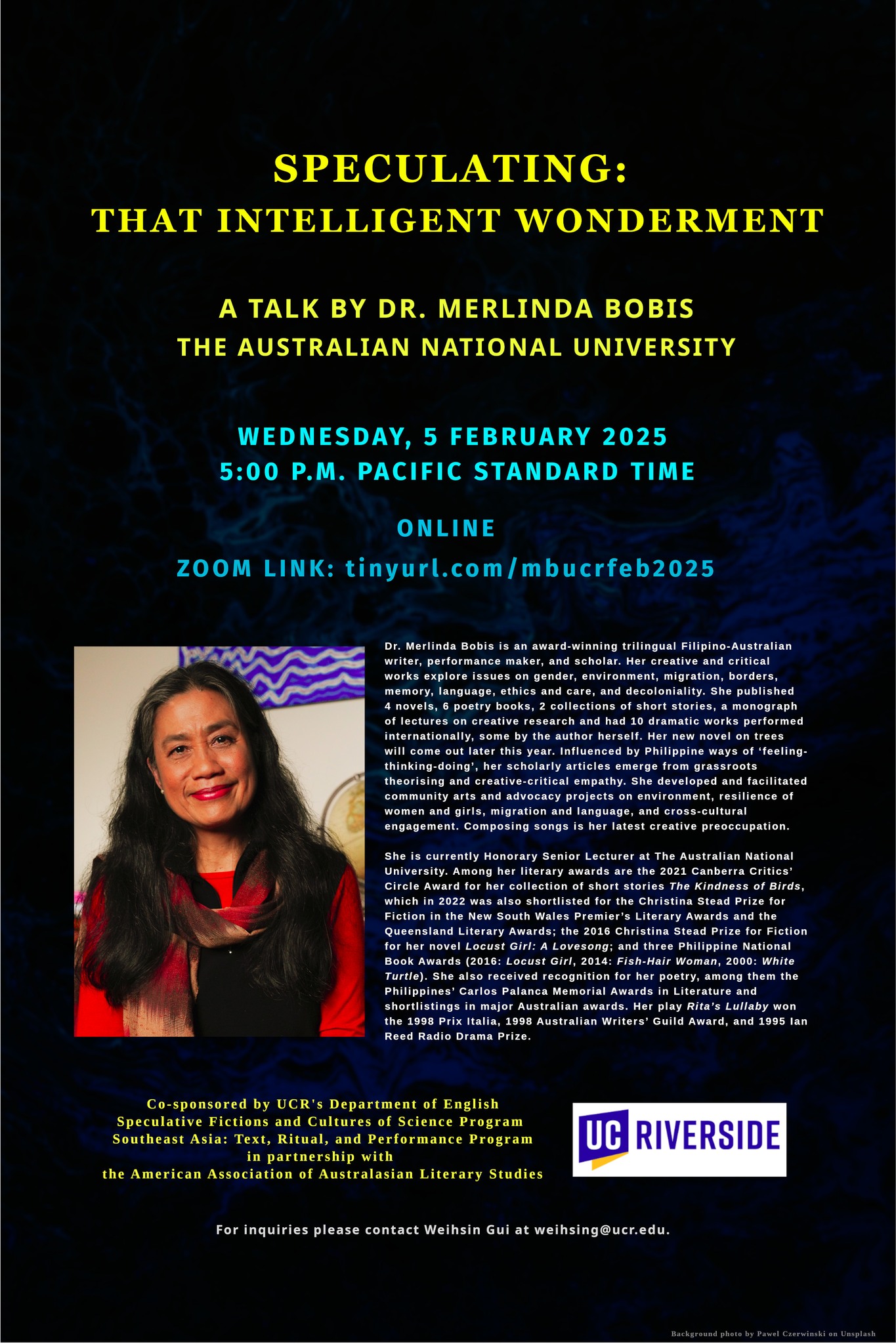Dr. Merlinda Bobis is an award-winning trilingual Filipino-Australian