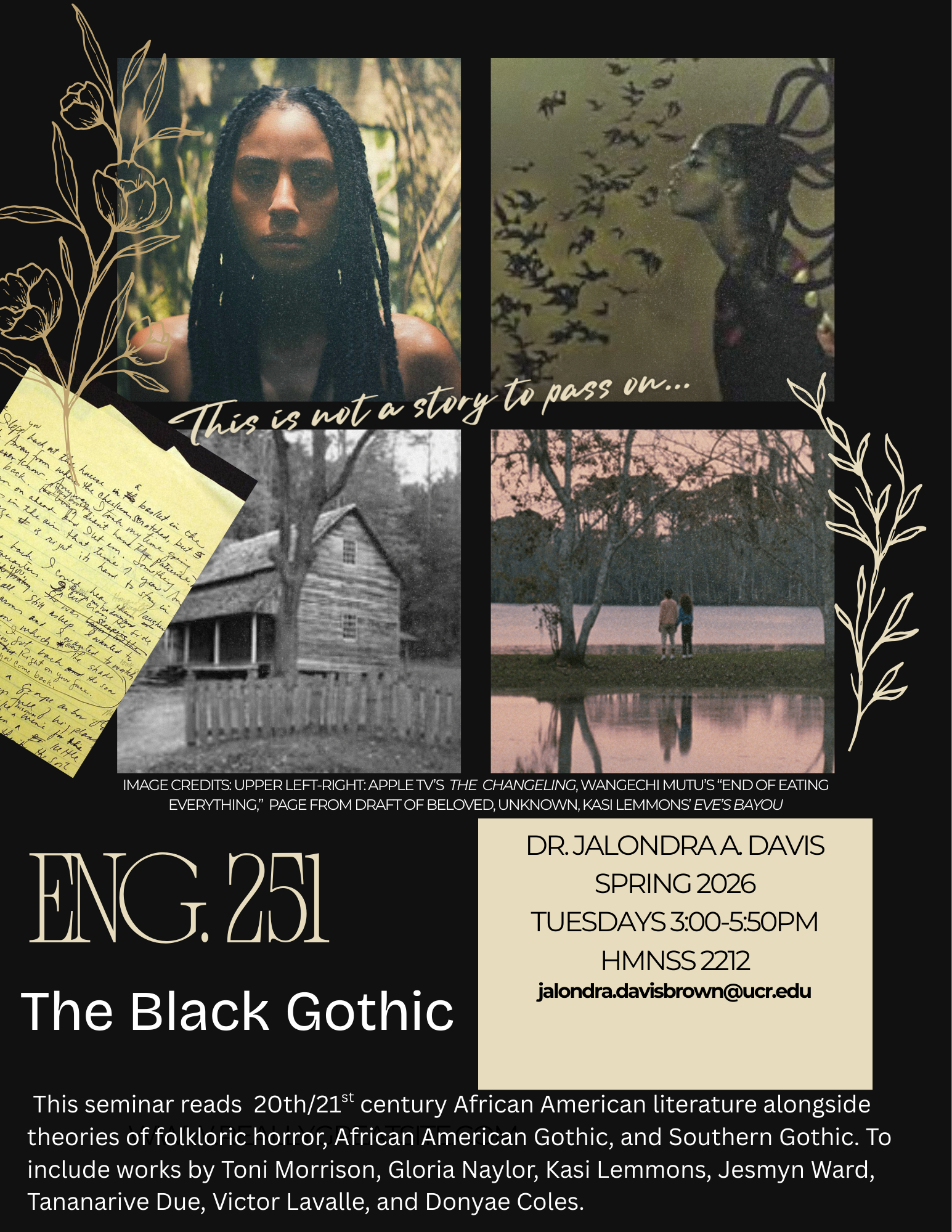 Prof. Davis's ENGL 251 Seminar on the Black Gothic will count a one of the