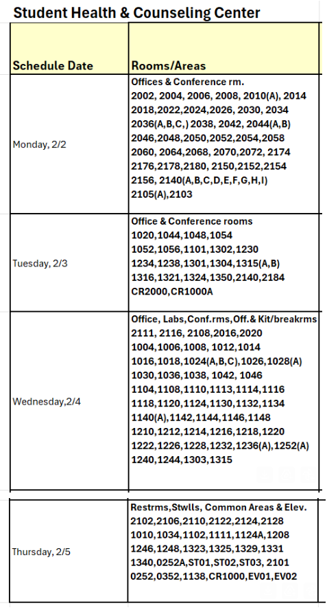 The carpeted areas in SHCC are scheduled to be cleaned next week beginning