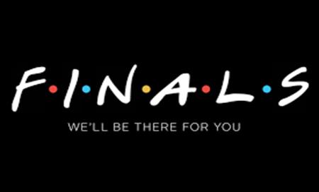["Finals; We'll be here for You" written in the center of a black rectangle.]