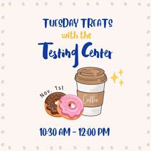 [Tuesday Treats with the Testing Center (Donuts and coffee pictured as clip art) 10:30 AM-12:00PM]