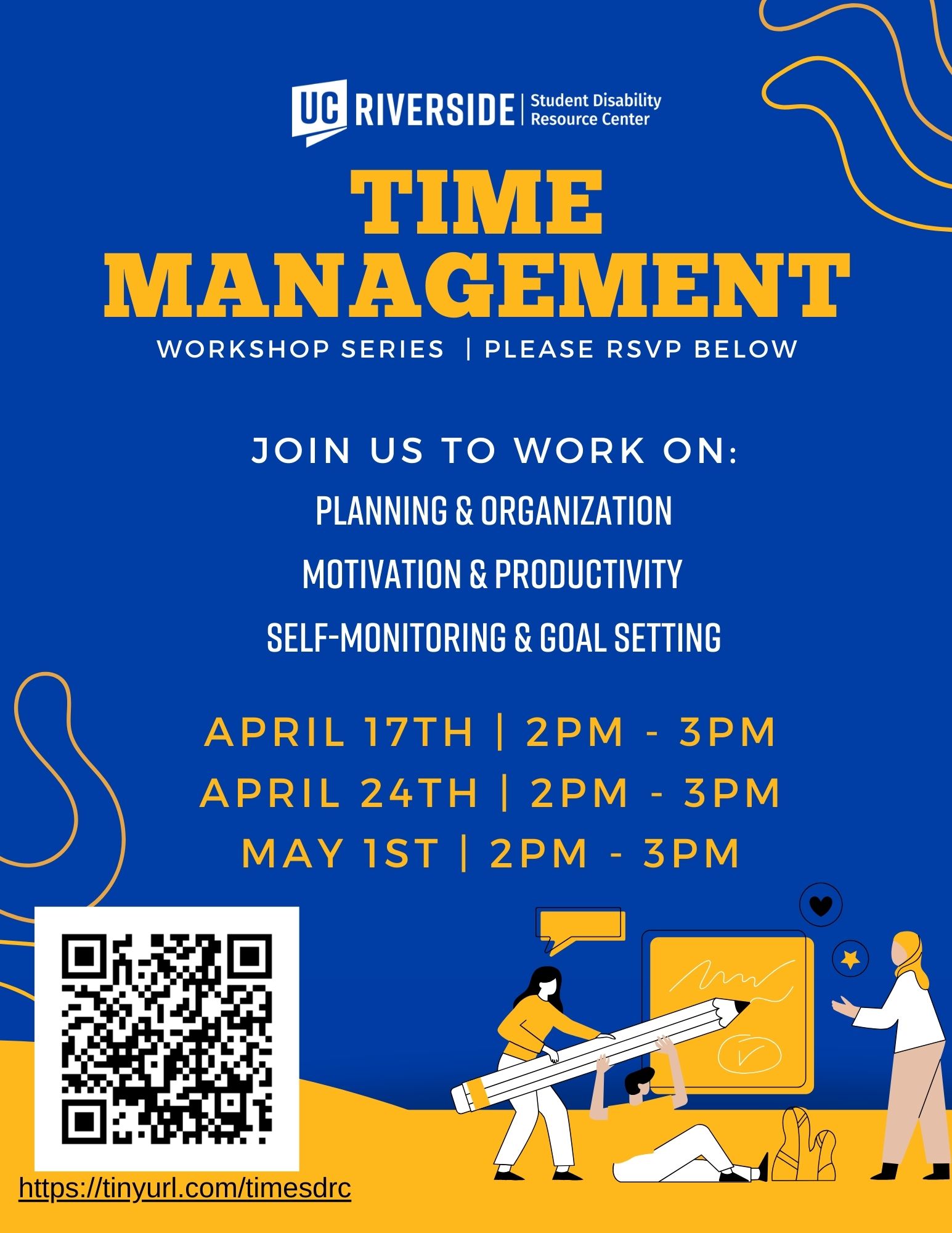 [Flyer for Spring 2024 Time Management Workshop Series including dates, times and RSVP link.]