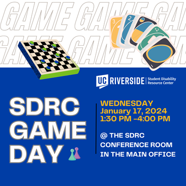 [Ucr-sdrc] SDRC Game Day 1/17 at 1:30 PM - 4: 00 PM