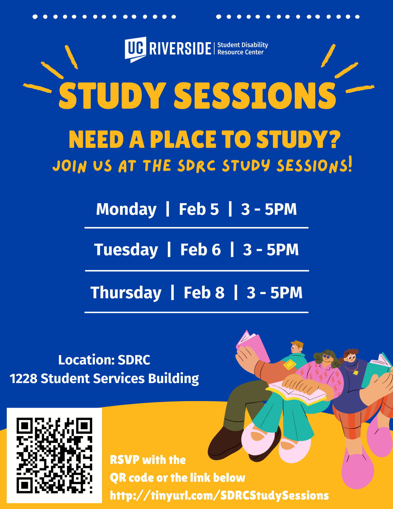 Need a place to study? Join us at the SDRC study sessions!
