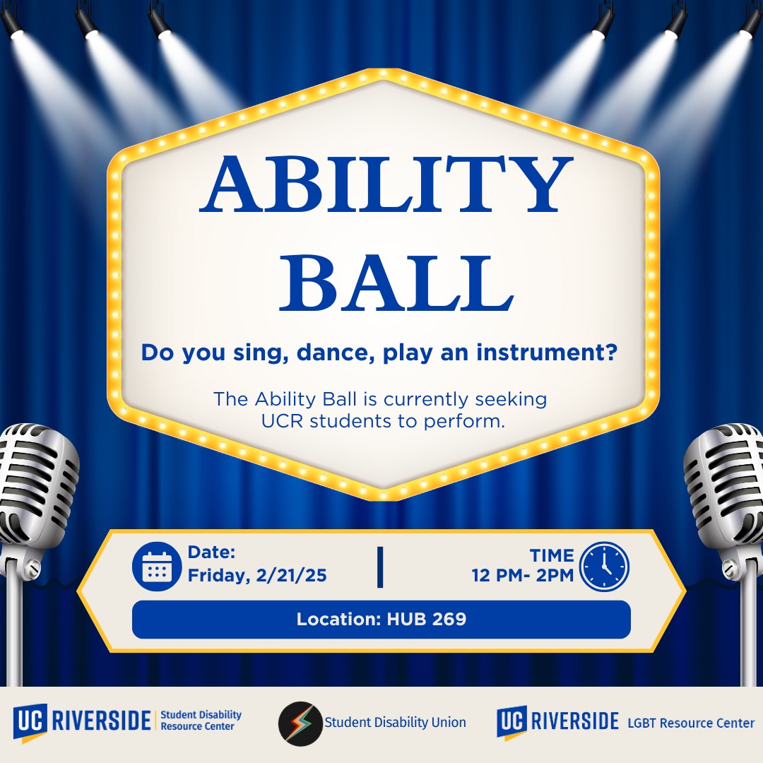 Do you sing, dance, play an instrument? Have any other talent you would like to showcase? The Ability Ball is currently seeking UCR students to perform.