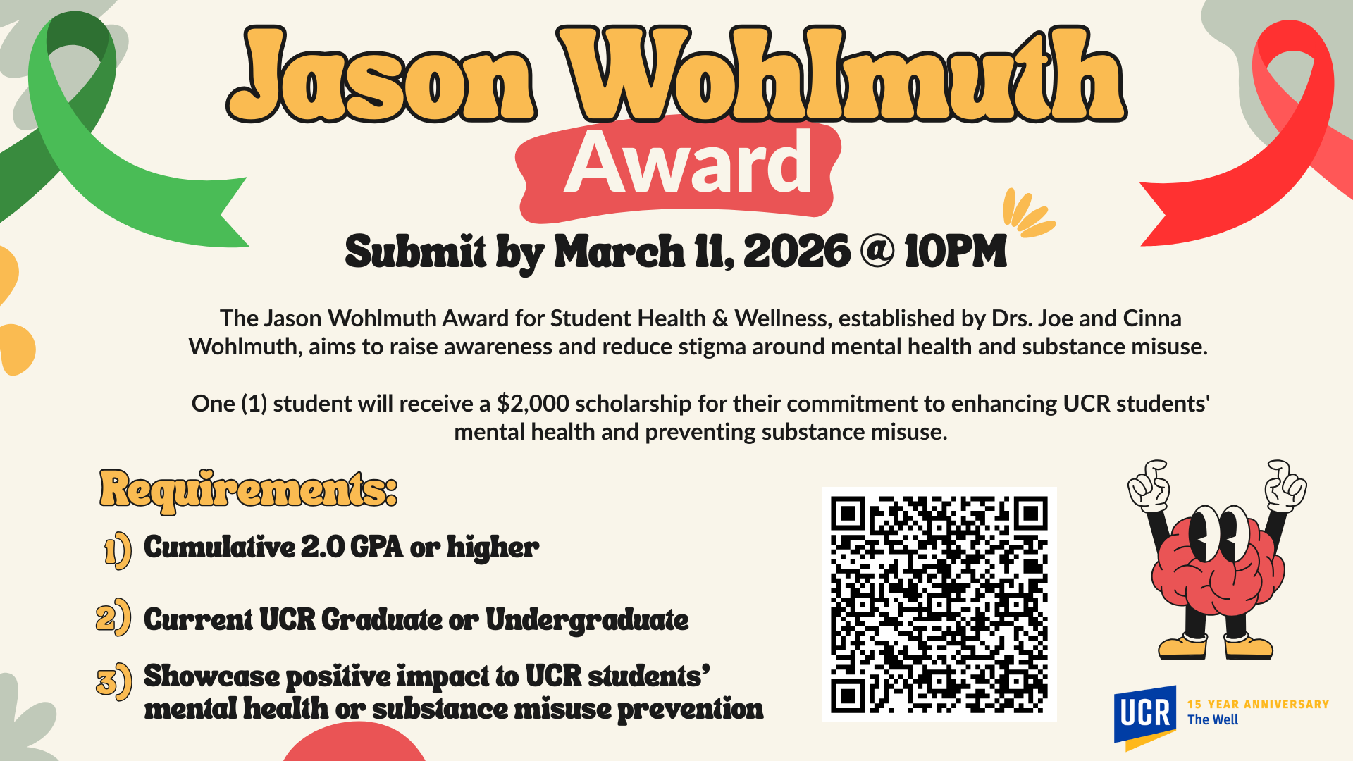 Wellness with your students. This $2,000 scholarship recognizes a UCR