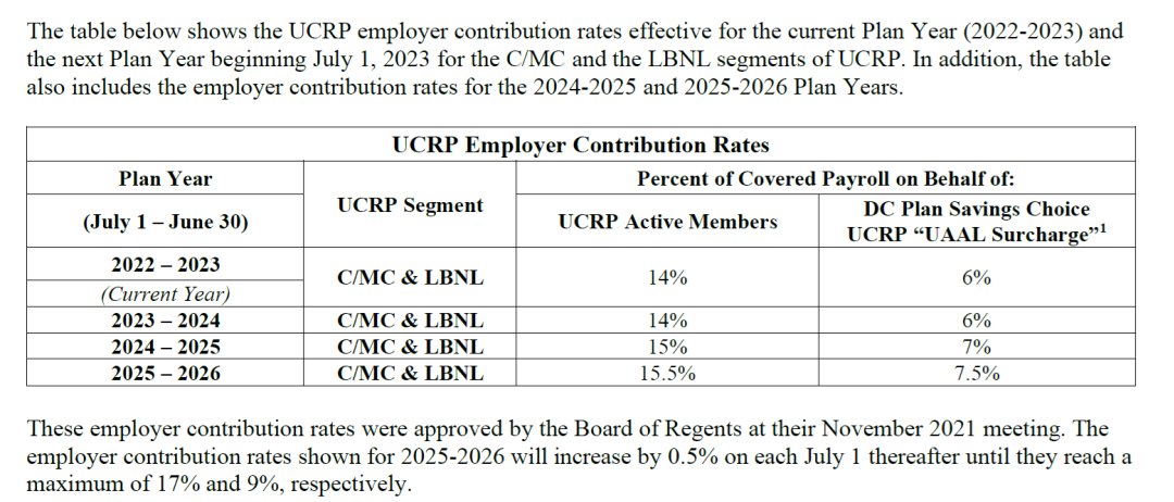 [UCRDBR] UCRP Employer Contribution Rates for Plan Year 2023