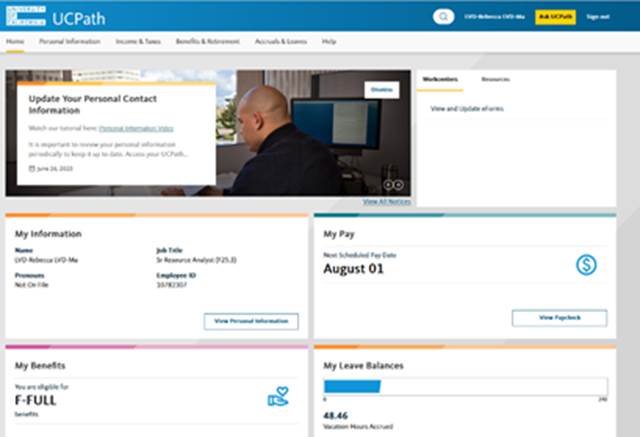 The UCPath modernized design improves the employee experience through more intuitive navigation, mobile optimization and simplified access to key self-service tools.