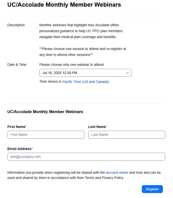 The Accolade Monthly Member Webinars will highlight UC PPO plan coverage and benefits.