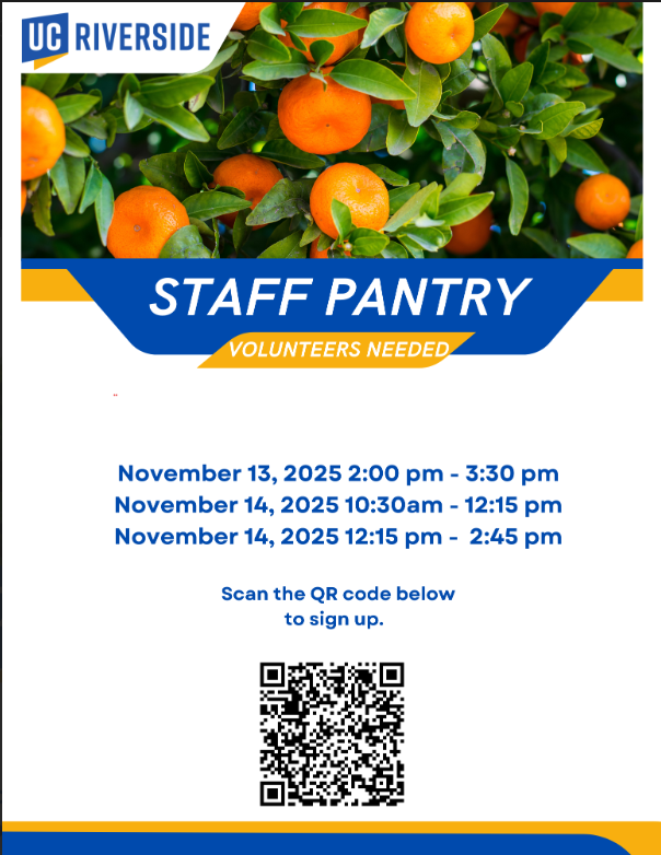 [UCRDBR] Volunteer Opportunity for Staff Pantry: November 13 &14