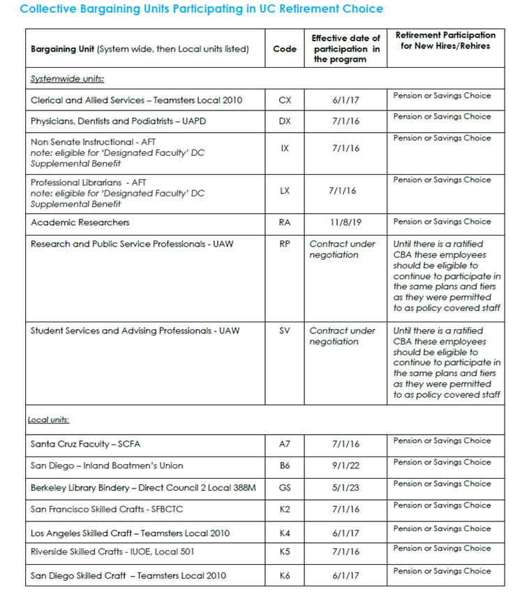 [UCRDBR] Updated Union Participation – Retirement Choice Program