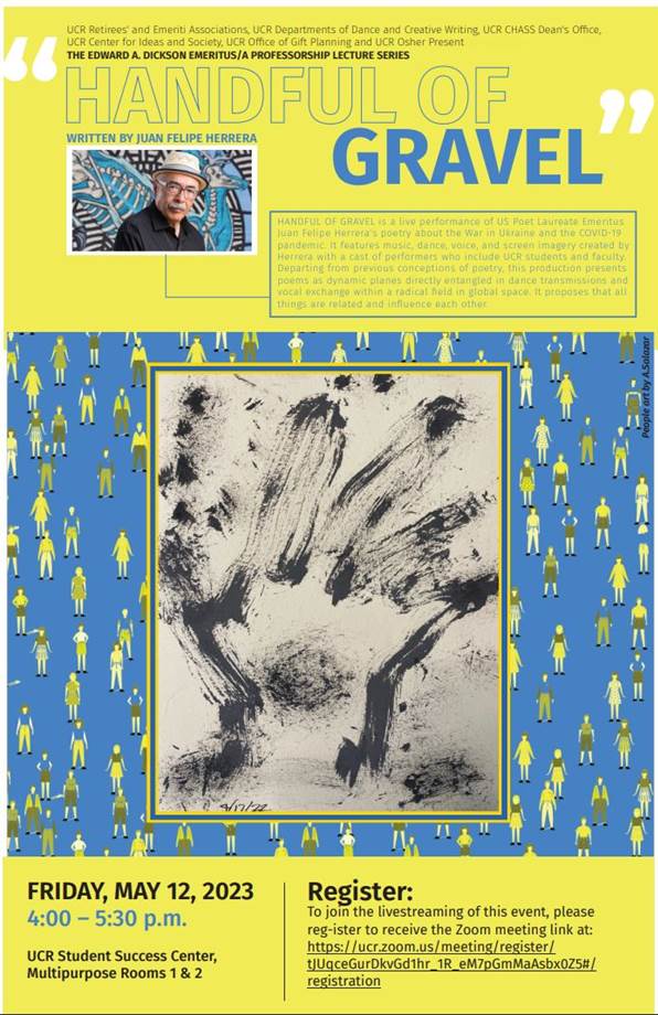 The invitation flyer can be downloaded on the retirees and emeriti webpage at: https://live-ucr-retirees.pantheonsite.io/document/dickson-lecture-juan-felipe-herrera-0.