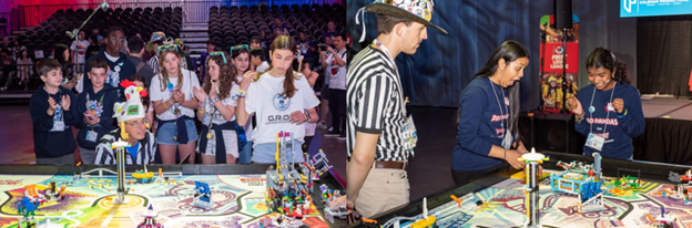 * Duties: Most volunteers will work as referees, scoring the robot performance, or as judges, reviewing the teams' presentations and their demonstration of FLL Core Values: discovery, innovation, inclusion, impact, teamwork, and fun. Other volunteer roles include timekeeping, scorekeeping, supervising the practice tables, and keeping teams on schedule. All volunteers are trained online beforehand and briefed on the morning of the event, and volunteers work in teams so first-timers are never on their own. No knowledge of robotics or undersea exploration is necessary.