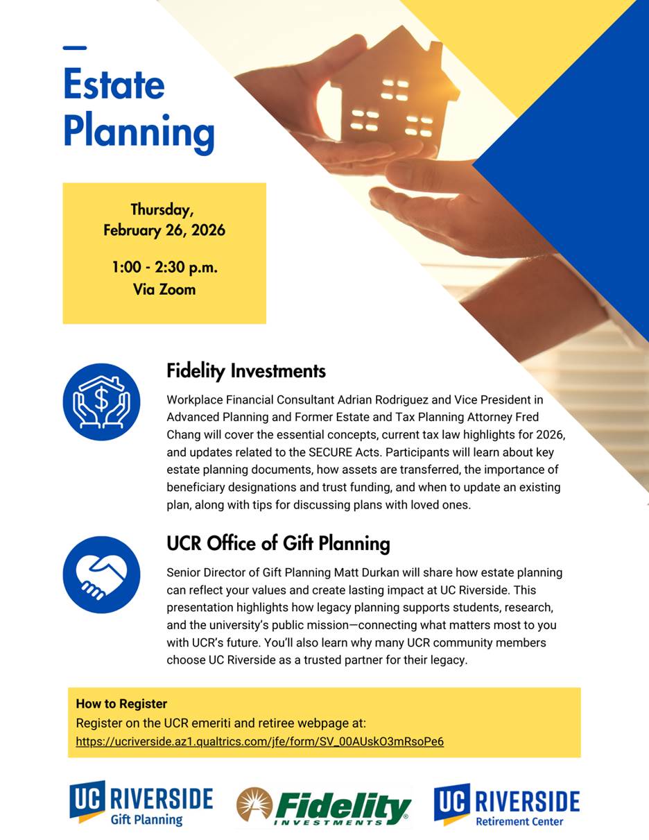 the UCR Office of Gift Planning on *Thursday, February 26, 2026 from 1:00 –