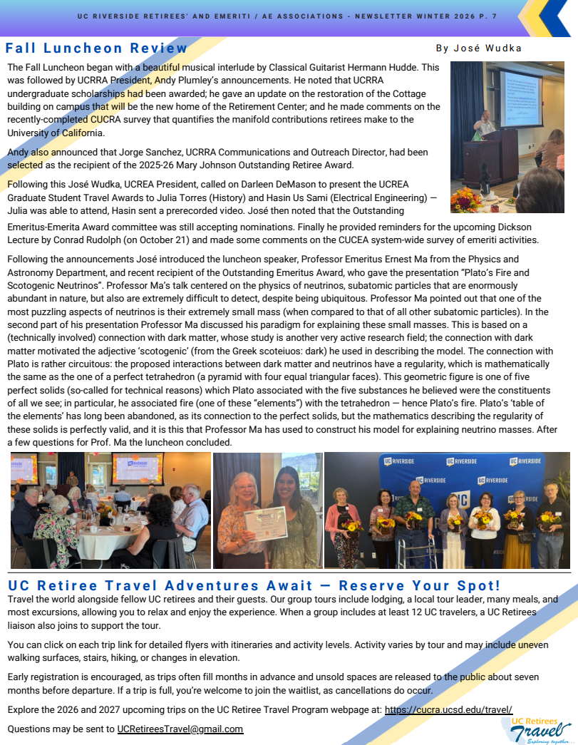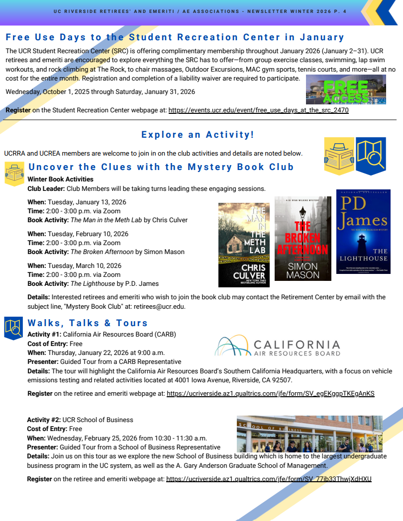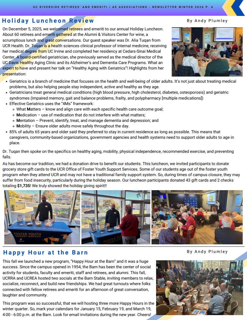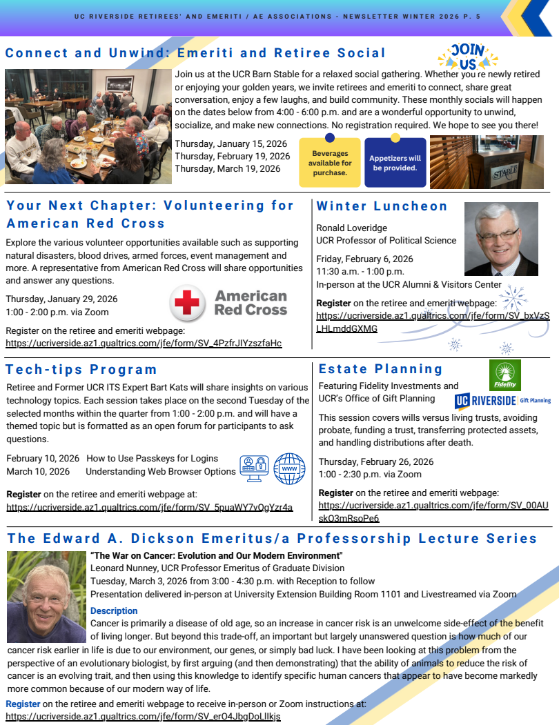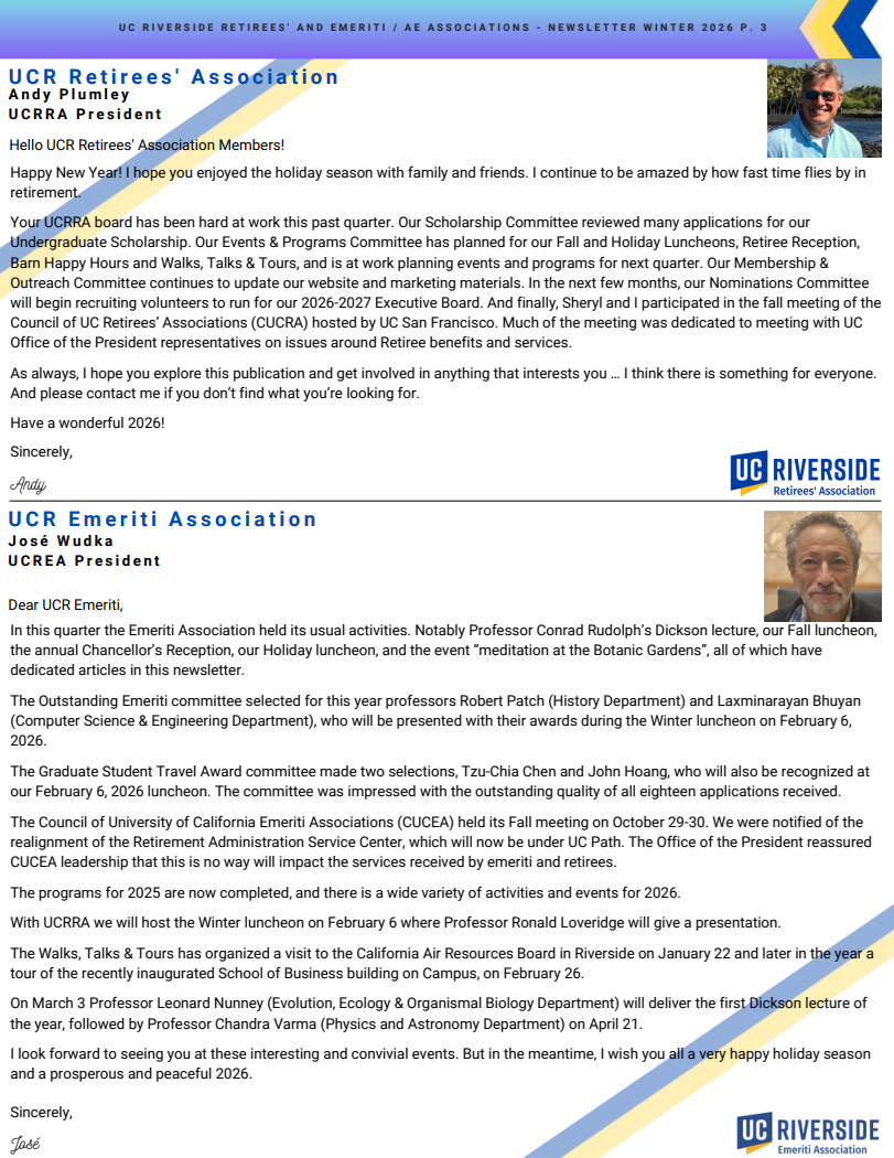 From: UCR Emeriti & Retirees’ Associations