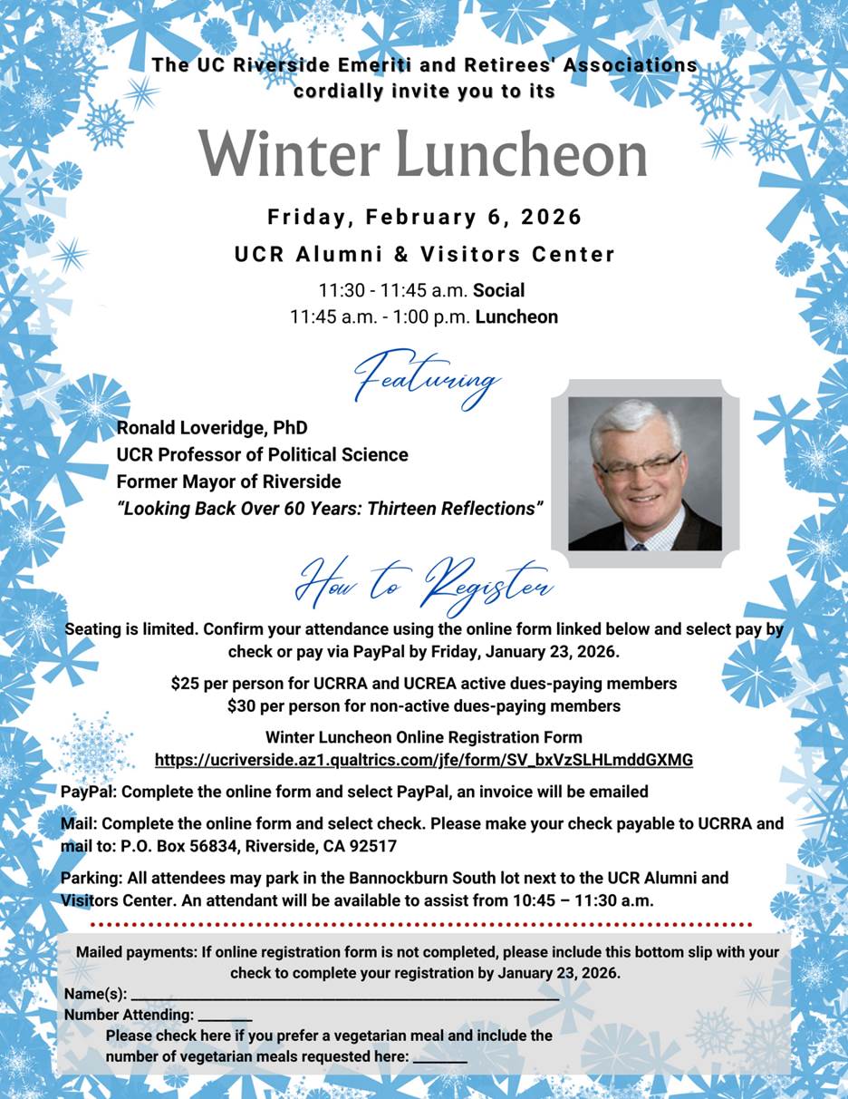 From: UCR Retirees’ and Emeriti Associations