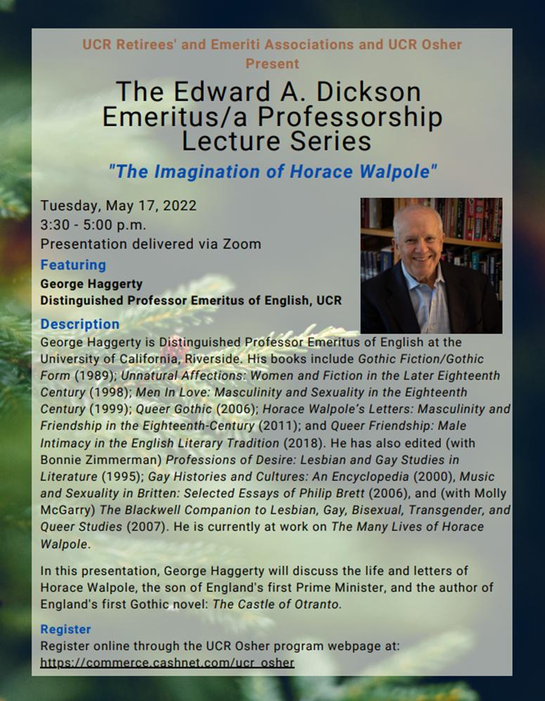 [UCRRA] Reminder: “The Imagination of Horace Walpole” Spring 2022 Dickson Lecture by George Haggerty
