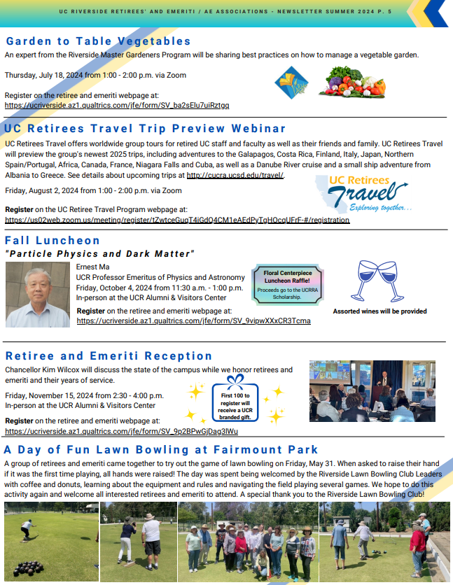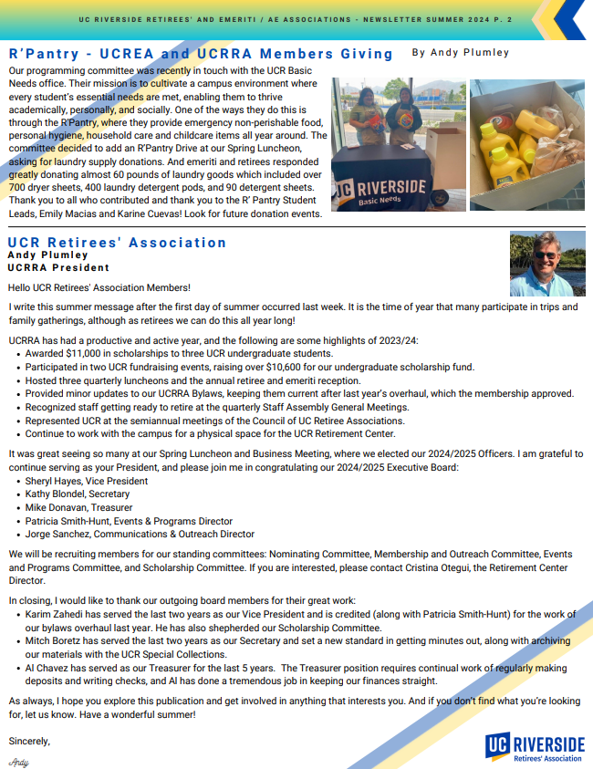 From: UCR Emeriti & Retirees' Associations