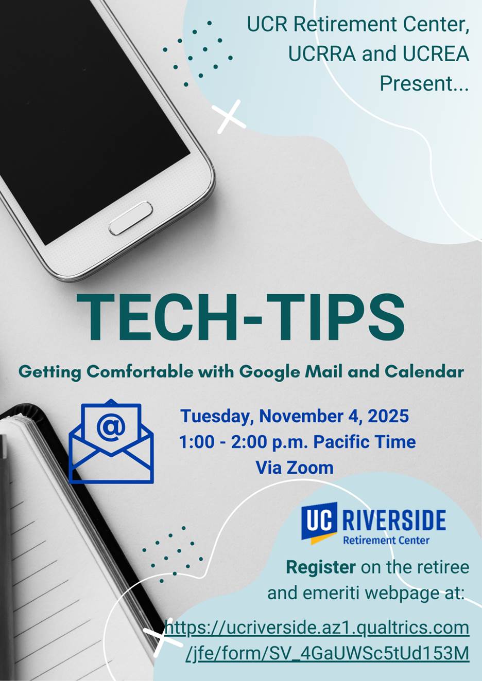 [UCRRA] Today! Getting Comfortable with Google Mail and Calendar Tech-tips Session | November 4, 2025