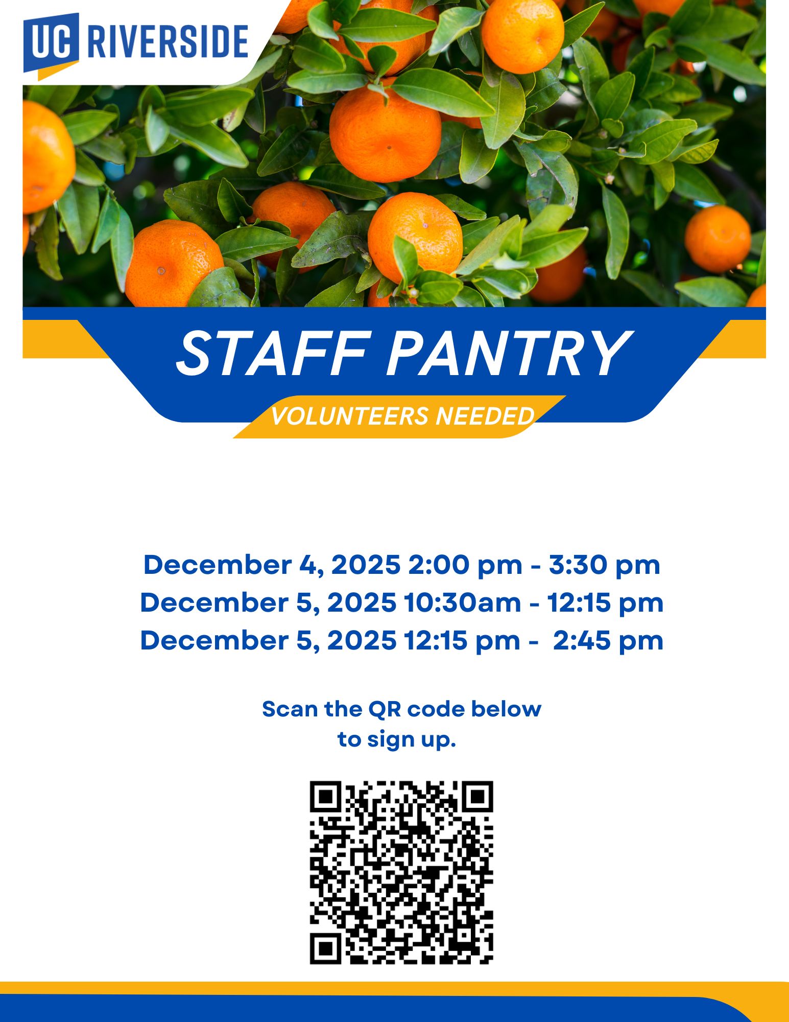 support the UCR Staff Pantry. Volunteer shifts are available prior to and