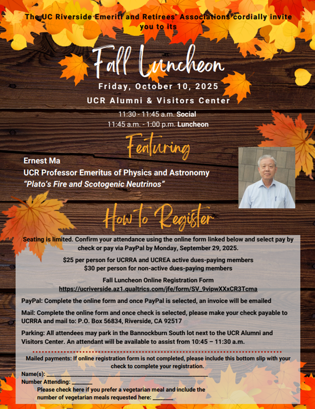 The UCR Retirees’ and Emeriti Associations invites you to attend their