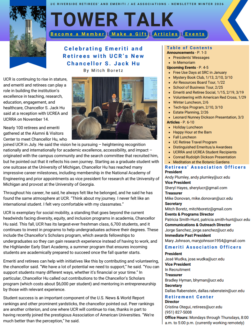 From: UCR Emeriti & Retirees’ Associations