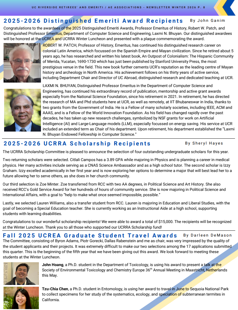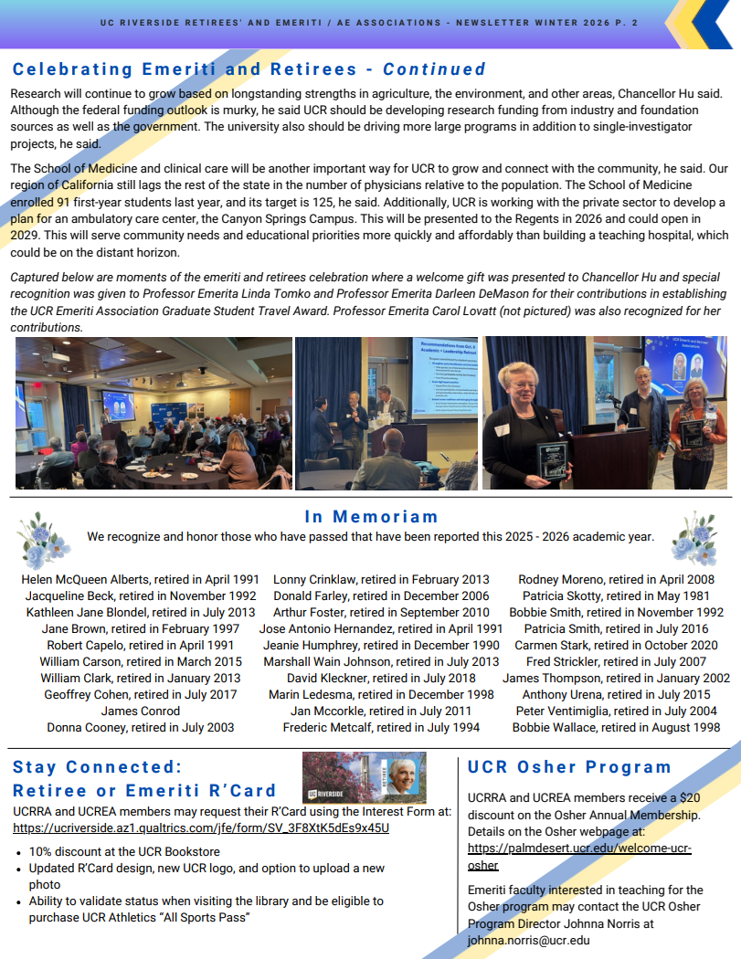 Please click on the attached document to view the UCR Emeriti and Retirees’