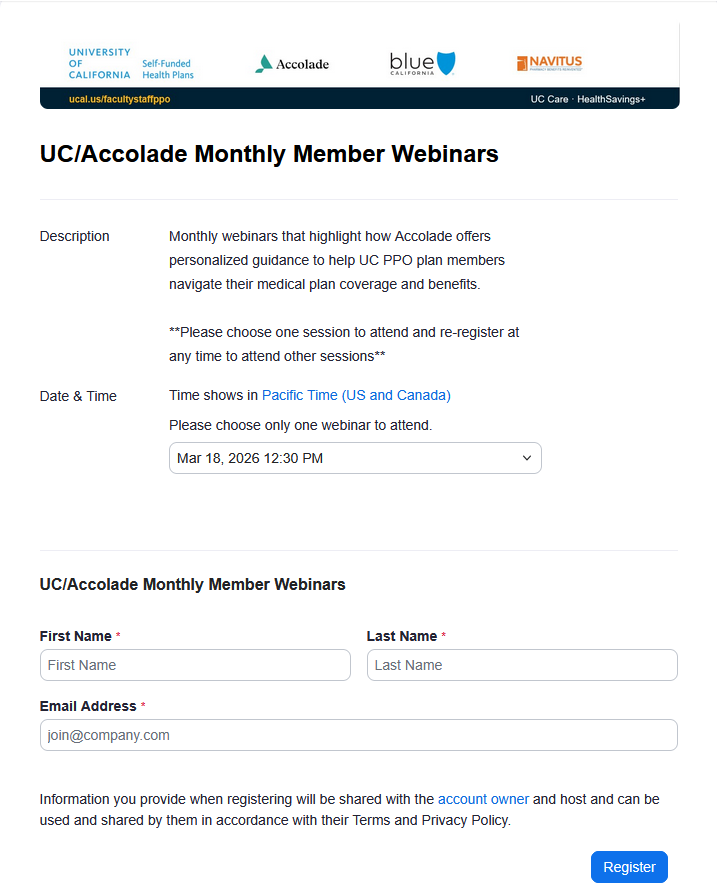 The Accolade Monthly Member Webinars will highlight UC PPO plan coverage