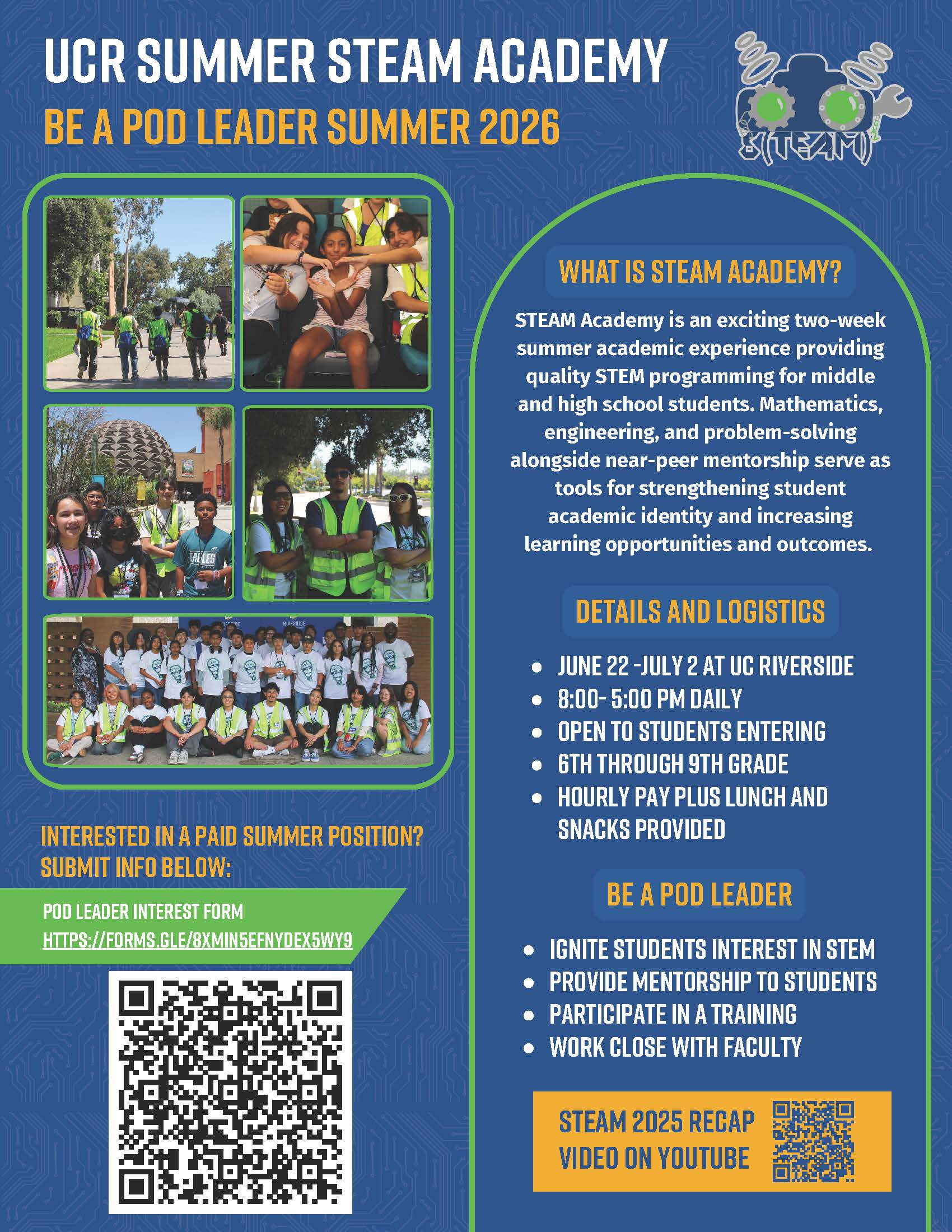 [Undergradstudents] STEAM Academic Pod Leader Application - Summer 2026